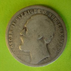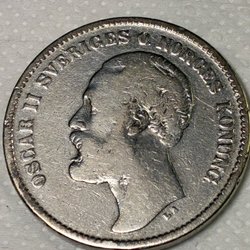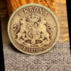 Silvermynt präglat 1876. Valören är 1 krona.
