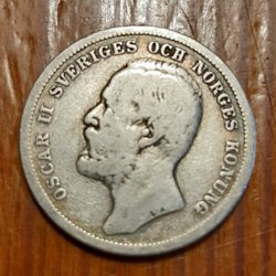 Silvermynt med Oscar II, Sveriges och Norges Konung. Valör: 1 Krona År: 1890