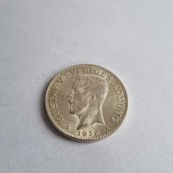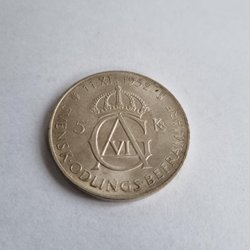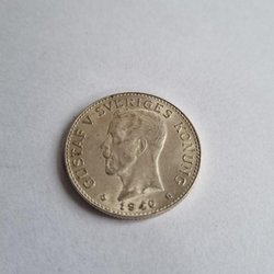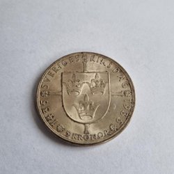 Silvermynt präglat 1907 med valören 2 kronor. Oscar II Sveriges Konung.