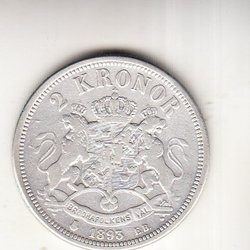 Svensk 2 Kronor fra 1907 med Oscar II. På mønten står der "Sveriges Val" og "2 Kronor". Kan samsendes med min andre annoncer.