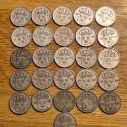 Betalning inom de närmaste dagarna efter inropat objekt, så att köpet kan registreras och förpackas för utskick. Inga mynt skickas innan betalning skett har sex bankdagar passerat anses köpet som ogiltigt och läggs ut igen för Traderas kunder. Är det så att ni bjudit på flera olika objekt så kan ni meddela detta så att Samfrakt kan ske. Lotter under 500:- porto 30:- om det inte väger väldigt mycket. Över 500:- skickas alltid mynt/mynten med rekommenderat och spårbart porto Postnord 130:- om inte värdet överskrider 6´000:- så får SAGA-77 ge pris efter inropat objekt. Eller från utlandet då tillkommer de kostnaderna som Postnord erbjuder. Kvaliteten är en uppskattning från säljaren så som han tolkar det, och säljs därefter.