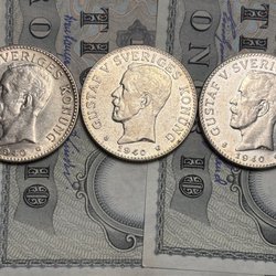 Under regeringstiden av Gustaf V mellan 1907 och 1950 präglades många unika svenska mynt, som nu går att hitta på Tradera. Att köpa dessa mynt hos oss ger samlare chansen att spara pengar, göra unika fynd och samtidigt värna om miljön. Buda hem svenska mynt på auktion eller köp direkt till fast pris!