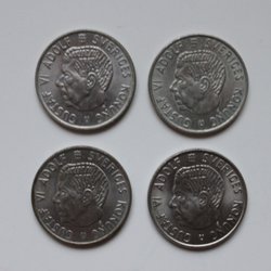 50 st enkronor med silvervikt på 2,8 gram/st och Silver är 400/1000, Se bild/er