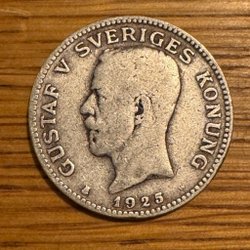 Silvermynt präglat 1929 med värdet 1 krona.