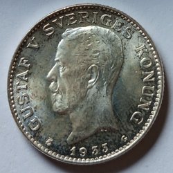 Silvermynt präglat med Gustav V, årtal 1940. Valören är 1 krona.