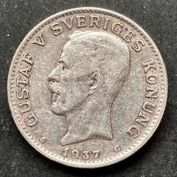 Silvermynt präglat med Gustaf V, årtal 1946 och valör 1 krona.