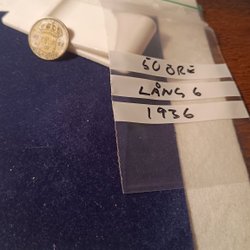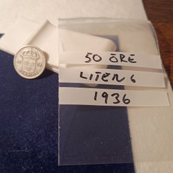 50 öre 1936 (SM 87 a), kort 6:a. Kvalitet 01/0 lyster!