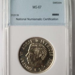 Framsidan visar Gustaf V och texten "GUSTAF V SVERIGES KONUNG". Baksidan har en krönt sköld och texten "MED FOLKET FÖR FOSTERLANDET".