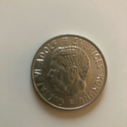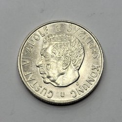 Svensk 2 krona med Gustaf VI Adolfs porträtt. År 1970.