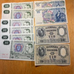 En 1 krona från 1962 med Gustaf VI Adolfs porträtt. På baksidan syns det svenska riksvapnet.