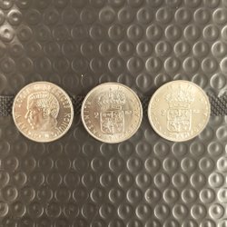 Svensk 2 krona från 1968 med Gustaf VI Adolfs porträtt. Valören är 2 kronor.
