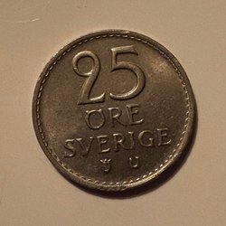 Ett 25 öre mynt från 1963.