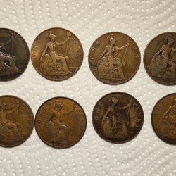 9 stycken mynt av valören 2 öre från 1943, 1956, 1960, 1967, 1968, 1968, 1968, 1970,1970 och 1971.