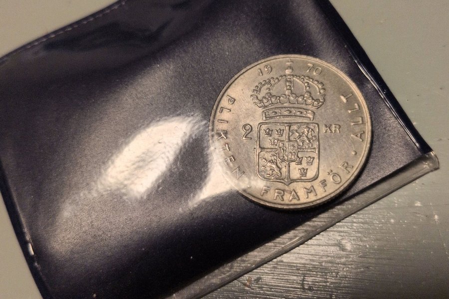 Silvermynt präglat 1970 med värdet 2 kronor.