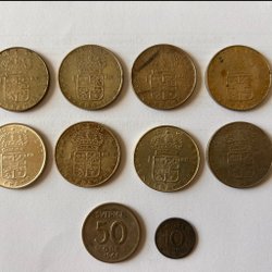 Parti med svenska mynt.