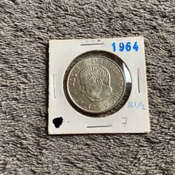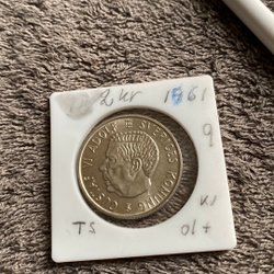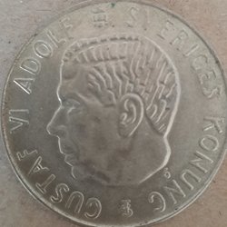 Ett samlarobjekt från Sverige, präglat år 1972 med ett värde av 5 Kr.Ina strömmar bakom lejonet synliga.