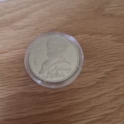 Detta är en minnesmedalj från Tyskland, präglad 1975. Den har ett porträtt av Albert Schweitzer och valören 5 Deutsche Mark.