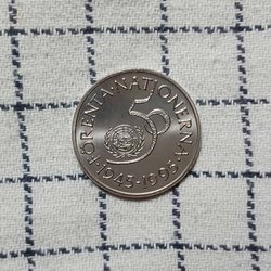 Svensk 5 krona 1945-1995 präglad för att fira FN:s 50-årsjubileum.