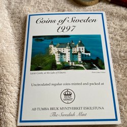 Fyra stycken svenska mynt. 5 Öre 1946. 1947. 1948. 1949