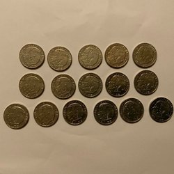 En samling svenska mynt med valörer som 10 öre, 25 öre, 50 öre, 1 krona och 5 kronor.