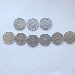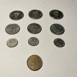 10 öre från Sverige. Dessa mynt är från 1980-1990.