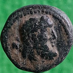 Antikt vackert brons mynt. (17mm, 4,9gr)