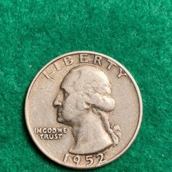 Detta är en Washington Quarter från 1957. Framsidan visar George Washingtons profil och texten "LIBERTY" och "IN GOD WE TRUST". Baksidan visar en örn med utbredda vingar och texten "UNITED STATES OF AMERICA", "E PLURIBUS UNUM" och "QUARTER DOLLAR". samfrakt