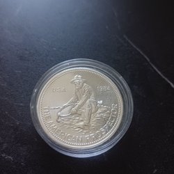 Silver Eagle från 1993. Framsidan visar Lady Liberty och baksidan visar en örn med texten "UNITED STATES OF AMERICA", "1 OZ FINE SILVER - ONE DOLLAR".