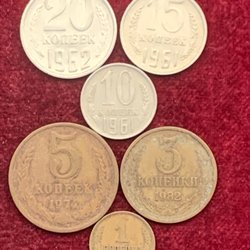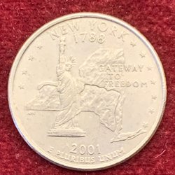 Fem amerikanska dimes. Framsidan visar Franklin D. Roosevelts profil. Baksidan visar en fackla, en ekkvist och en olivkvist. Mynten är från 1967, 1974, 1999, 2000 och 2004. Varje mynt har ett värde av en dime.