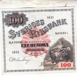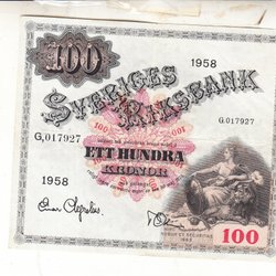 Sedel 100 kronor 1958 1/1+