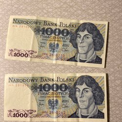 Två rumänska sedlar. Den ena sedeln är från 1998 med ett värde av 5 000 lei. Den andra sedeln är från 1999 med ett värde av 10 000 lei.