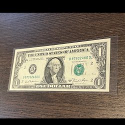 En USA sedel med värdet 1 dollar. Serienummer E20444756D. Årtal 2003.