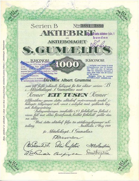 Gumaelius, AB, 1.000 kr, 1919, Stockholm