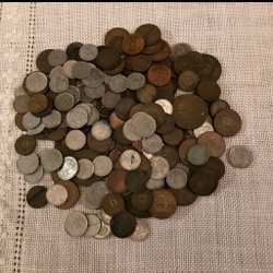 Ett parti med blandade mynt från olika länder och årtal. Inkluderar mynt med valörer.