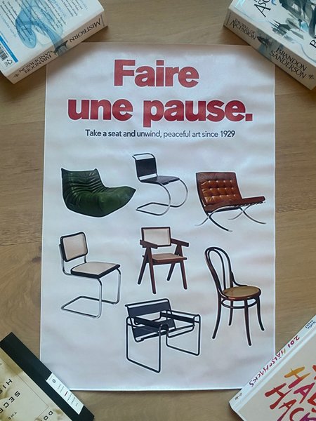 ”Faire une pause. Take a seat and unwind, peaceful art since 1929”
