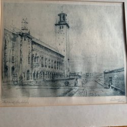 Tryck signerad Tryggve Emond 76, numrerad 39/160. Höjd 61 cm, bredd 72 cm.