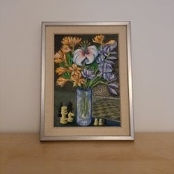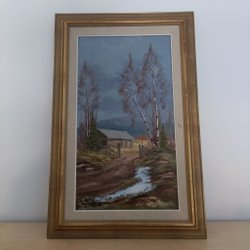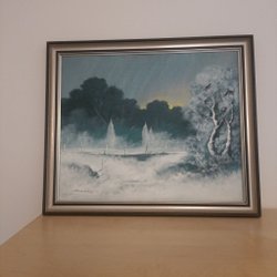 Den är inramad i en glasram från IKEA. Ca 13x18 cm mäter ramen. Det förekommer små märken på glasets yttre kanter.I övrigt är det väldigt bra skick.