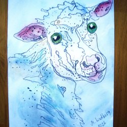 Målning föreställande en häst. Konstverket är signerat M. Lindberg 2020. Målningen är utförd med bläck och akvarell på papper.