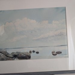 Akvarellmålning med landskapsmotiv. Signerad i nedre högra hörnet.