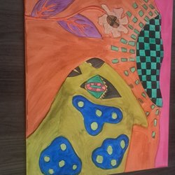 Een schilderij met een uniek ontwerp.