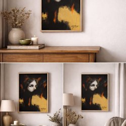 Konstverket skildrar ett porträtt i en unik och modern stil, perfekt för att ge karaktär till vilket rum som helst.