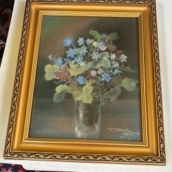 En vacker målning föreställande en blomsterbukett i en vas. Målningen är signerad.