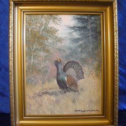 En vacker tavla med ett skogsmotiv. Den har en guldfärgad ram och är signerad av konstnären.30x25cm