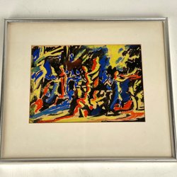 En vacker målning med abstrakta former och färger. Signerad och daterad 1978. På baksidan finns en etikett från Galleri Liljan i Värnamo.
