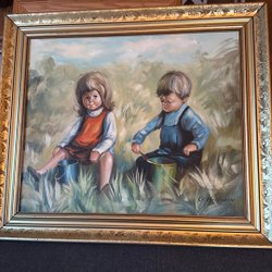 En vacker tavla med motiv av båtar och hus vid vattnet. Signerad av konstnären.rammått 27x23 cm.