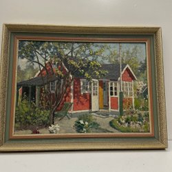 En vacker tavla med ett motiv av ett landskap. Signerad J.K. Dinesen 1965.
