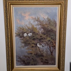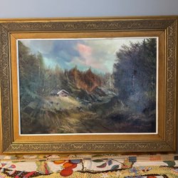 En vacker oljemålning på duk. Signerad med initialerna "HW" i nedre vänstra hörnet. Motivet föreställer en kvinna vid en brunn med en kärra och mjölkkannor i bakgrunden.