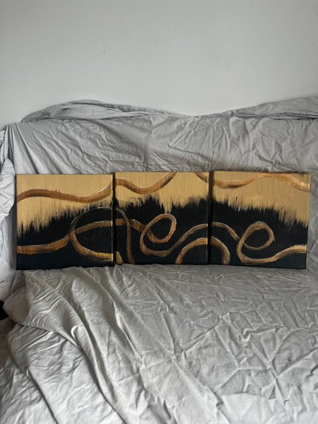 Abstrakt triptyk i 3 delar. Målad av lokal konstnär. Varje tavla är 20x20.