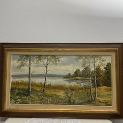 En vacker tavla med motiv av en båt vid vattnet. Signerad av konstnären.