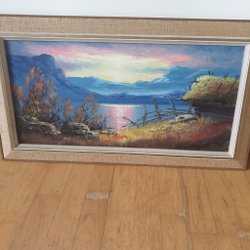 En tavla med motiv av stockholm i mörker. Tryck av Sven xet Erixsson. Mått 70x57 cm.